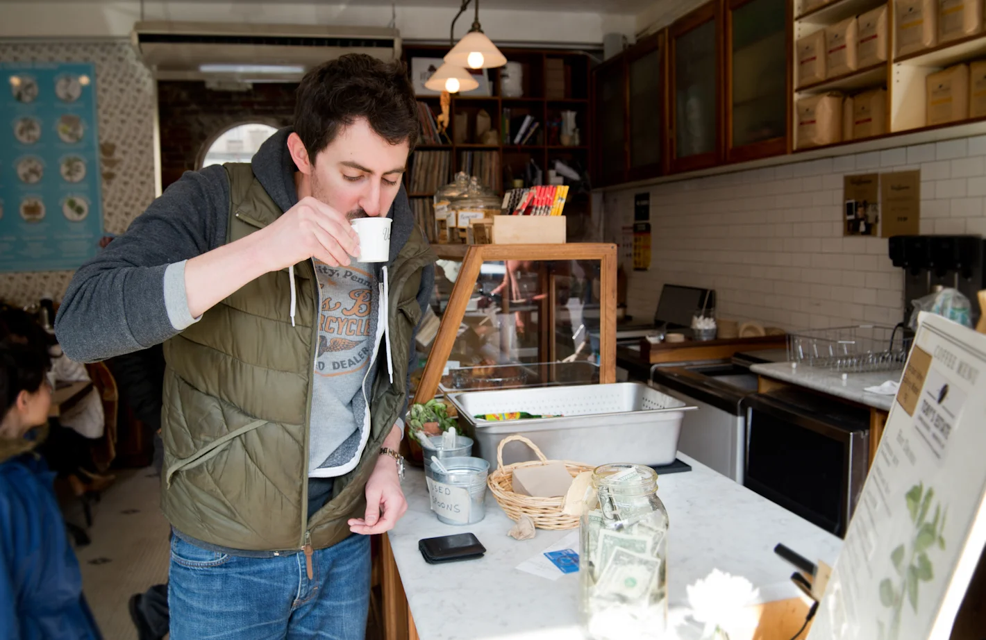 I have to admit I usually waste the better part of the morning in bed. By the time I haul my ass up at 11 I'm feeling good and I grab a paperback or my iPad and walk out to one of two coffee shops, depending on my mood: Pedlar Cafe or Van Leeuwen, which is actually an ice cream place but has a fun, cozy space to get a lil macchiato.