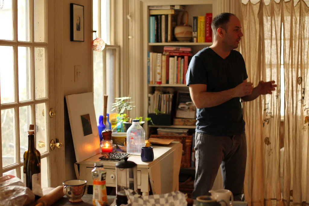 We don’t really know what typical is just yet. Today (a Sunday) I got up early (7am), (Norah got up earlier to feed Elliot) and I went down to the kitchen to make coffee and still get the Sunday NY Times out of the door. I brought Norah coffee and a muffin (from Yellow Bird Café that I bought yesterday…which reminds me that I went to the grocery store and to the market on Saturday which is Norah’s typical weekend routine thing to do…so this weekend that changed). I then made myself breakfast (eggs over easy and maple sausage links and toast I bought at the market yesterday) and started reading the Times and fooling on the internets. Norah then joined me in the living room with Elliot and we took turns holding him, (she feeding) and reading and internetting. So, in general, our Sunday routine has some semblance of the old one, but we will figure it out as we go.