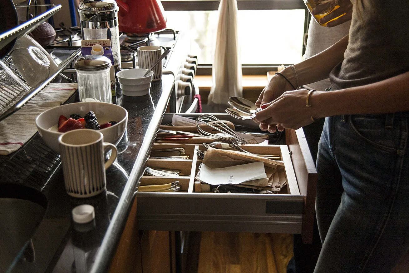 Usually I kick the cat off me, then grind some beans for my coffee. If I'm up early enough, I like to go for a walk before the streets wake up.